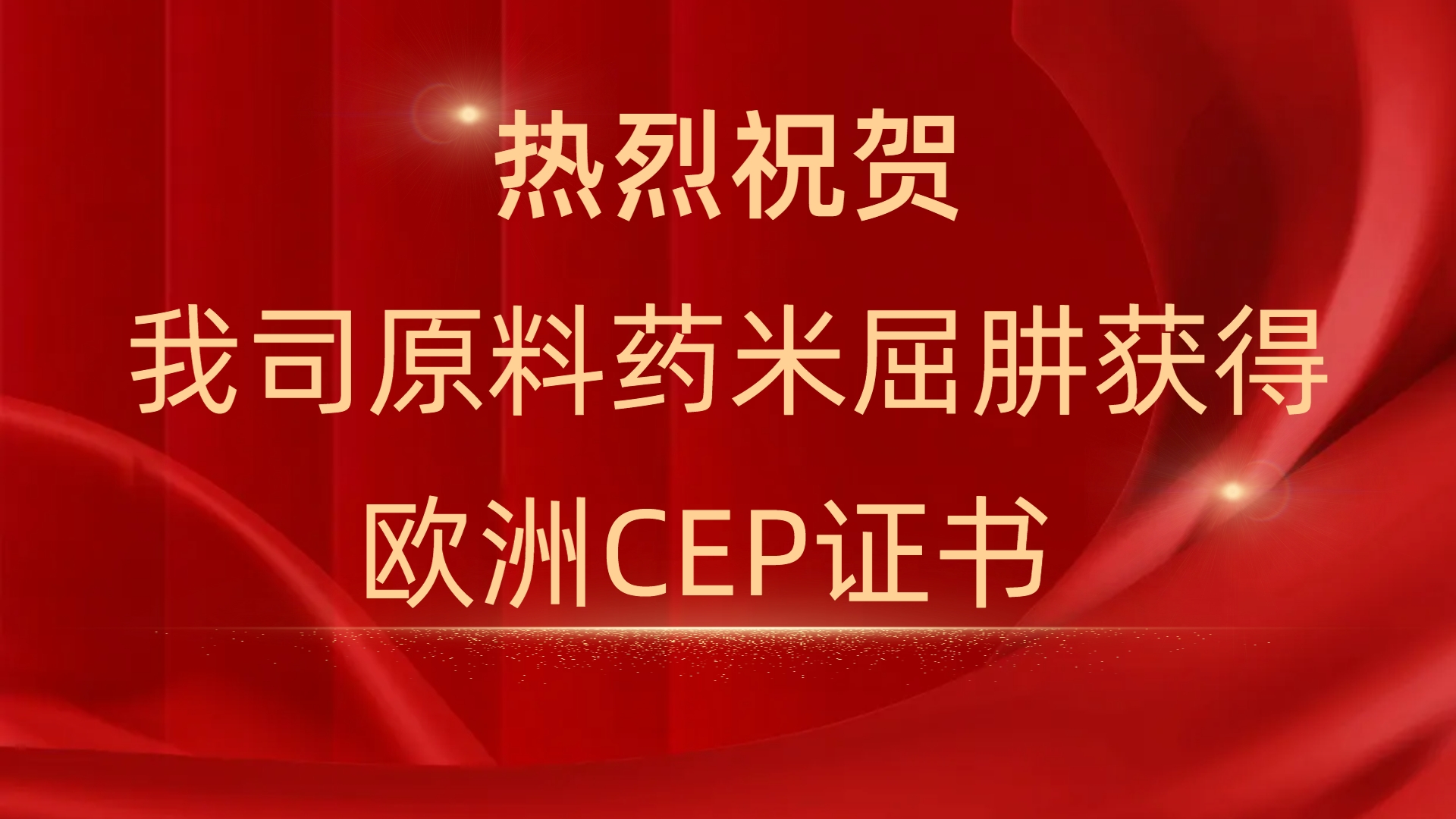 2023年8月21日,我公司原料藥米屈肼獲得歐洲藥品質(zhì)量管理局(EDQM)簽發(fā)的歐洲藥典適用性證書(CEP證書)。