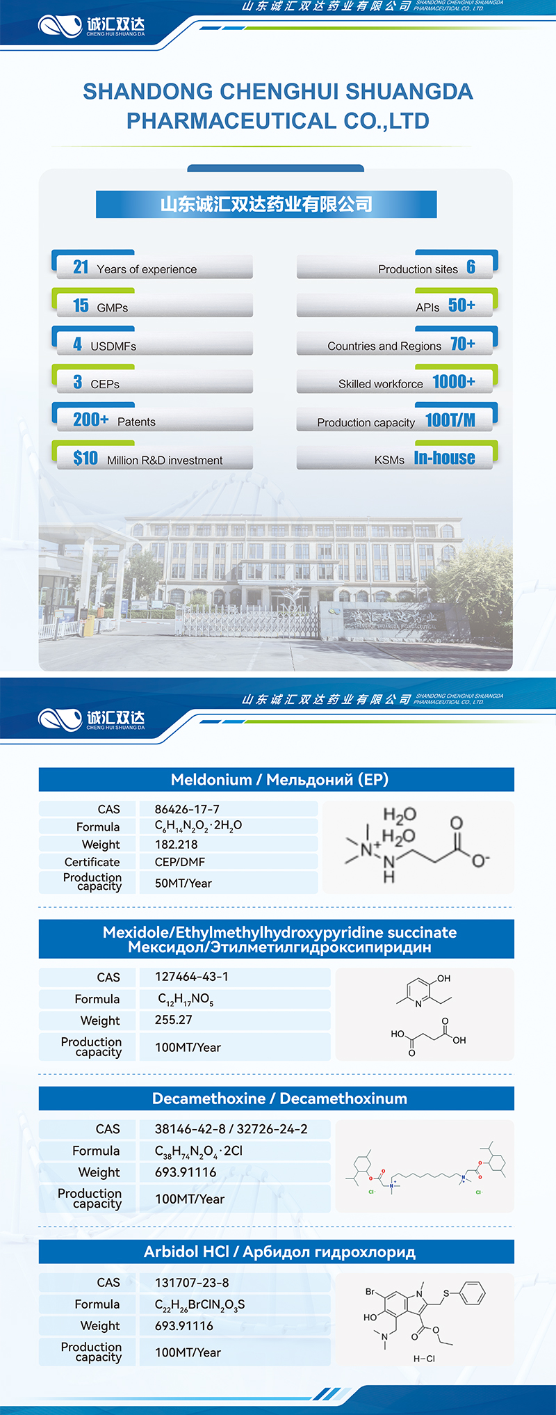 山東誠匯醫(yī)藥集團(tuán)有限公司成立于2002年6月,是集醫(yī)藥原料藥、中間體、CDMO和MAH產(chǎn)品研發(fā)、生產(chǎn)、銷售為一體的綜合性醫(yī)藥企業(yè)。集團(tuán)現(xiàn)擁有1個研發(fā)中心-山東誠創(chuàng)藍(lán)海醫(yī)藥科技有限公司,1個原料藥廠-山東誠匯雙達(dá)藥業(yè)有限公司及兩個醫(yī)藥中間體生產(chǎn)基地。