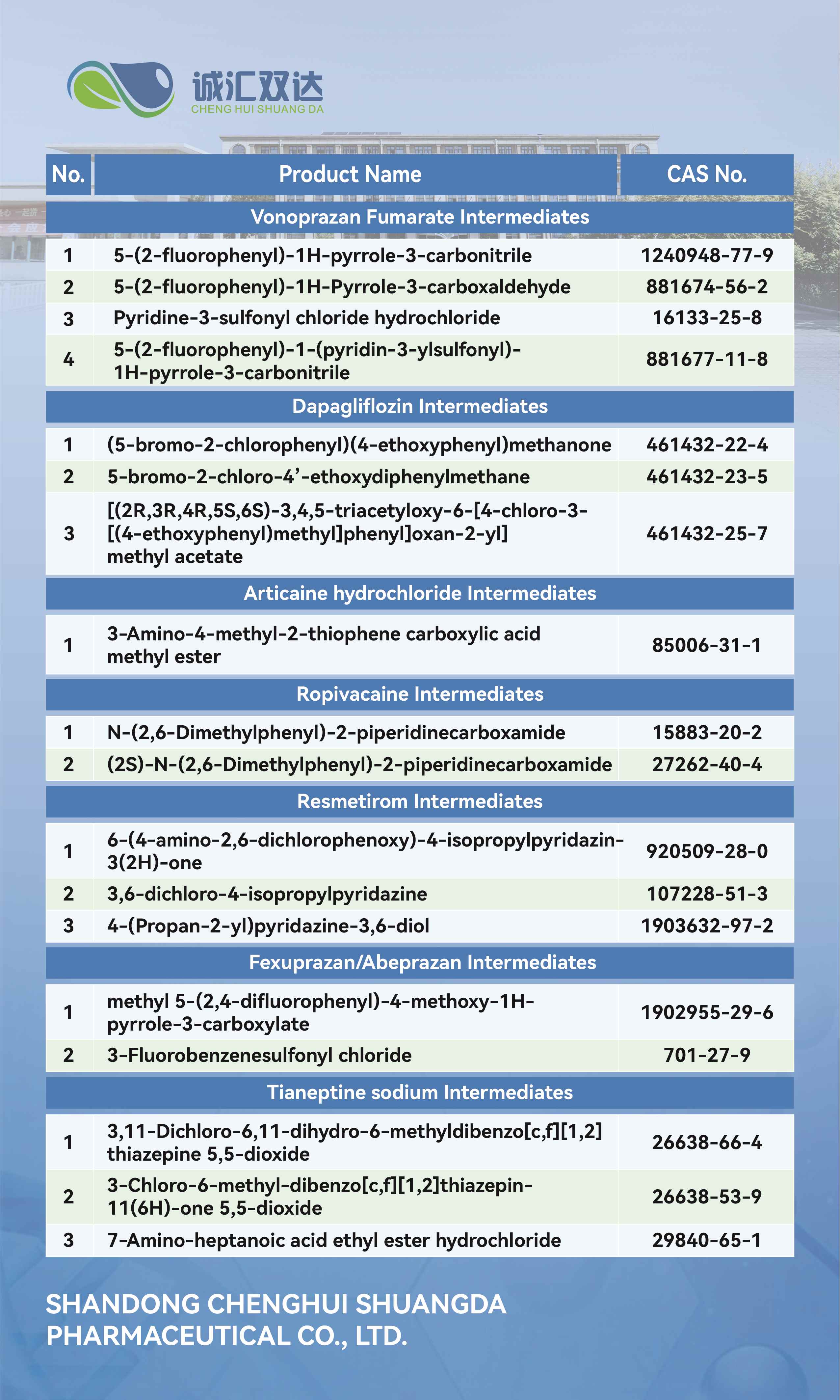 原料藥: 維生素類、激素類、解熱鎮(zhèn)痛藥、消化系統(tǒng)用藥、抗感染類藥物、抗寄生蟲病藥,心血管系統(tǒng)用藥,中間體