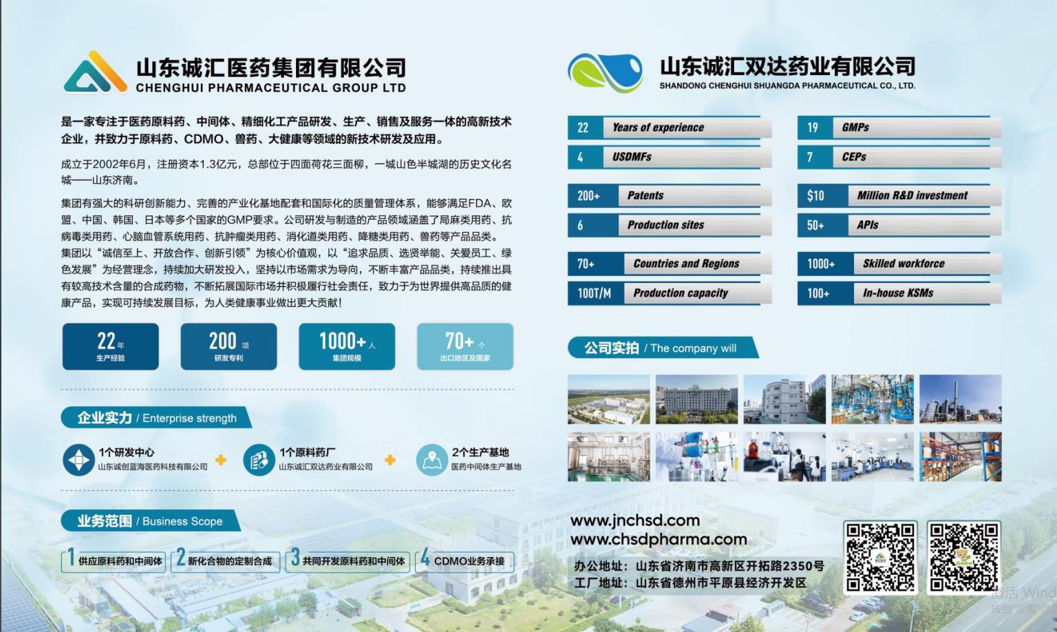 山東誠(chéng)匯醫(yī)藥集團(tuán)有限公司成立于2002年6月,注冊(cè)資本1.3億元,總部位于山東濟(jì)南。是一家專注于醫(yī)藥原料藥、中間體、精細(xì)化工產(chǎn)品研發(fā)、生產(chǎn)、銷售及服務(wù)一體的高新技術(shù)企業(yè),并致力于MAH、CDMO、獸藥、農(nóng)化等領(lǐng)域的新技術(shù)研發(fā)及應(yīng)用。