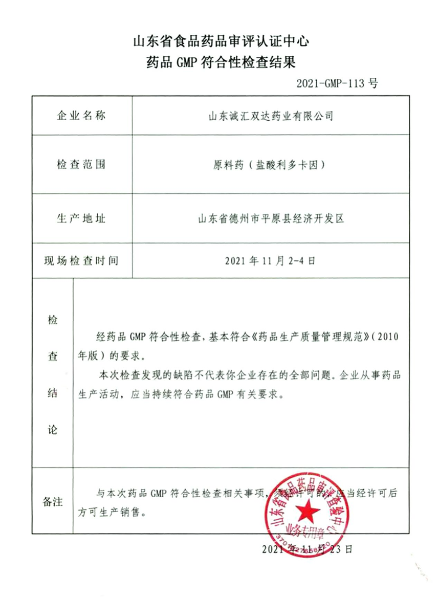 鹽酸利多卡因順利通過GMP符合性檢查是我公司發(fā)展史上具有重大意義的又一里程碑事件,標(biāo)志著我公司各項(xiàng)管理工作水平已達(dá)到GMP要求,具備了規(guī)范化藥品生產(chǎn)和上市的能力,為公司在今后的激烈的原料藥市場競爭中打下了堅(jiān)實(shí)的基礎(chǔ)。我們堅(jiān)信,只要我們繼續(xù)堅(jiān)持和更加努力,公司未來的發(fā)展必將大鵬展翅、更上一層樓!