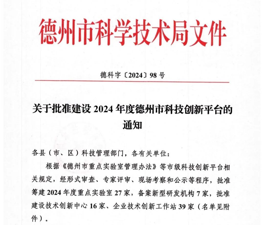 近日,德州市科技局發(fā)布了《關(guān)于批準(zhǔn)建設(shè)2024年度德州市科技創(chuàng)新平臺(tái)的通知》德科字〔2024〕98號(hào),建設(shè)名單中,我司申報(bào)的德州市抗病毒類藥物技術(shù)創(chuàng)新中心成功入選,這一喜訊不僅是對(duì)公司在技術(shù)研發(fā)和創(chuàng)新能力上的肯定,更是對(duì)誠(chéng)匯雙達(dá)藥業(yè)未來(lái)發(fā)展的激勵(lì)與鞭策。